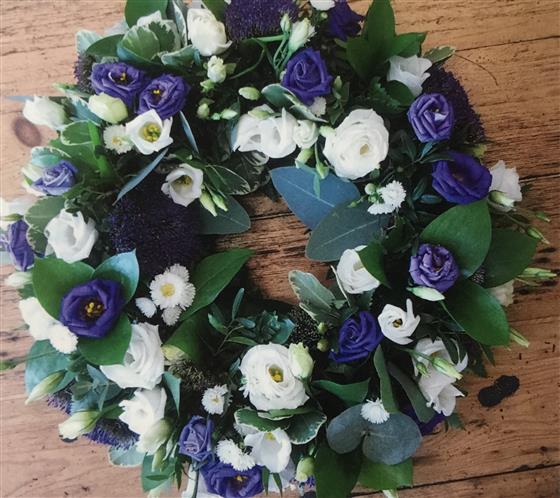 Funeral Flowers - Beautiful Purple and White Wreath 1