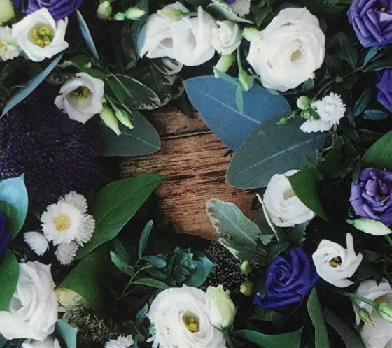 Funeral Flowers - Beautiful Purple and White Wreath zoom 2Funeral Flowers - Beautiful Purple and White Wreath zoom 3