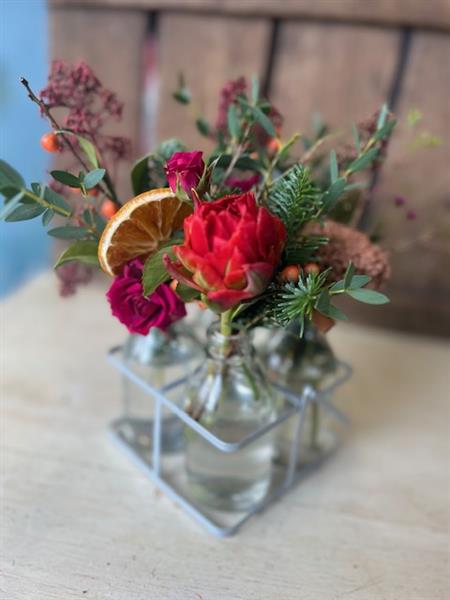 Festive milk bottles, perfect for a Christmas gift. Standard set includes 4 milk bottles and large includes 6 milk bottles.