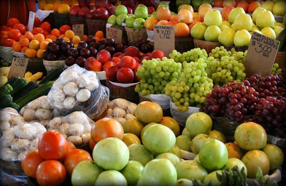 The mixed basket contains a mixture of seasonal fruits, along with the usual apples, bananas, pears, oranges and grapes.