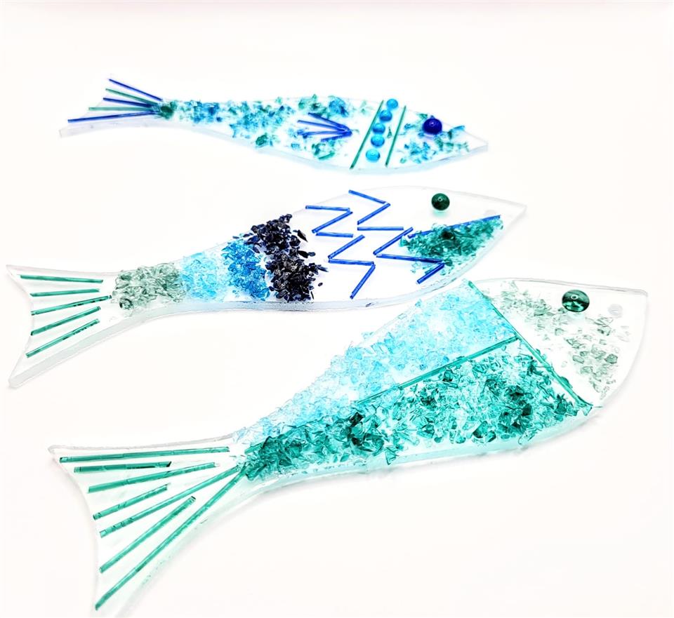 Based from her home studio in Ferring, Pash has been working in glass for the past 10 years and loves to come up with new designs and executing her ideas in beautifully unique ways. She also runs workshops for small groups to design and make their own glass artworks, jewellery and decorations.